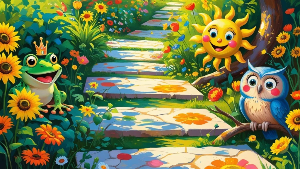 Turn your walkway into a magical path straight out of a children’s book by painting pavers with whimsical characters—frogs with umbrellas, owls with glasses, or smiling suns. It’s perfect for family-friendly gardens or play areas.